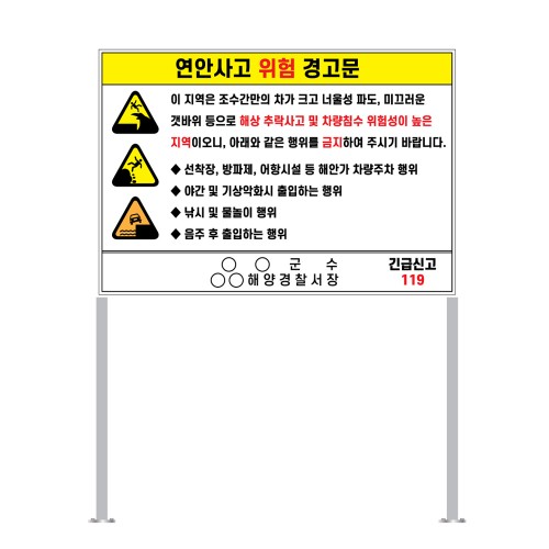 [인쇄제작] 표지판 스텐리스 매립지주 900x2000디자인 변경 가능한 자립식 안전 표지판 대형1,000,000원 -