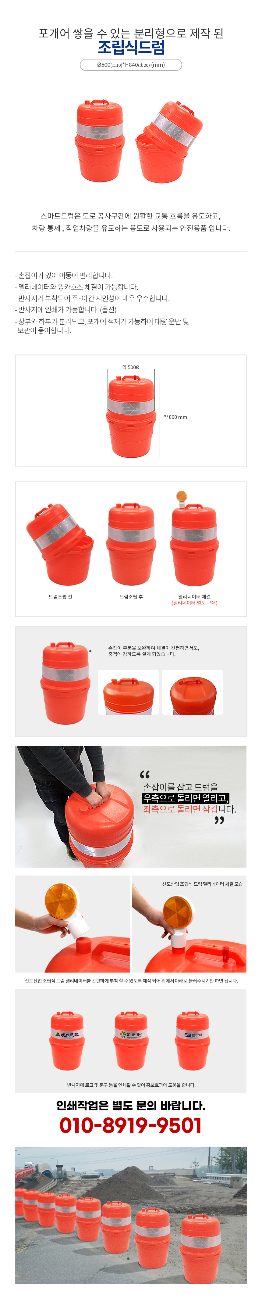 > PE드럼 분리형 고휘도반사띠적용 오렌지색